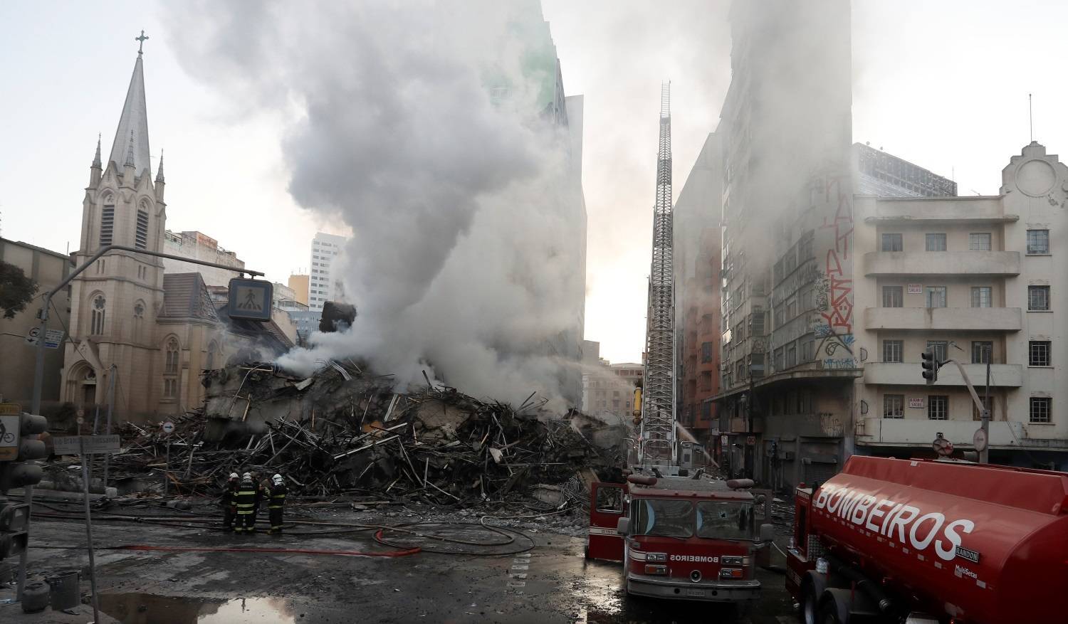 Bombeiros combatem incêndio em prédio na zona oeste de sp.